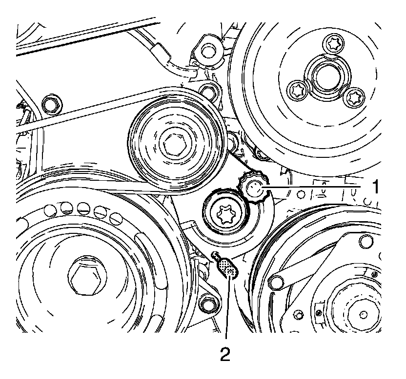 2. Release tension to the tensioner by rotating counterclockwise (1).