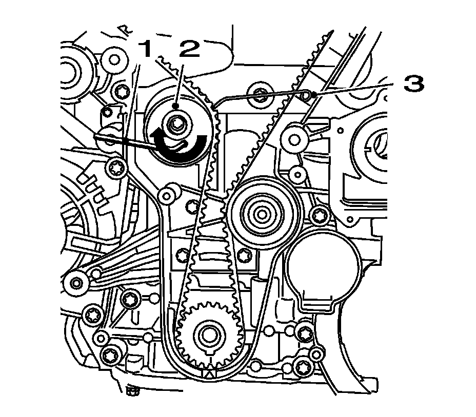 Note: The timing belt tensioner moves automatically to the correct position.