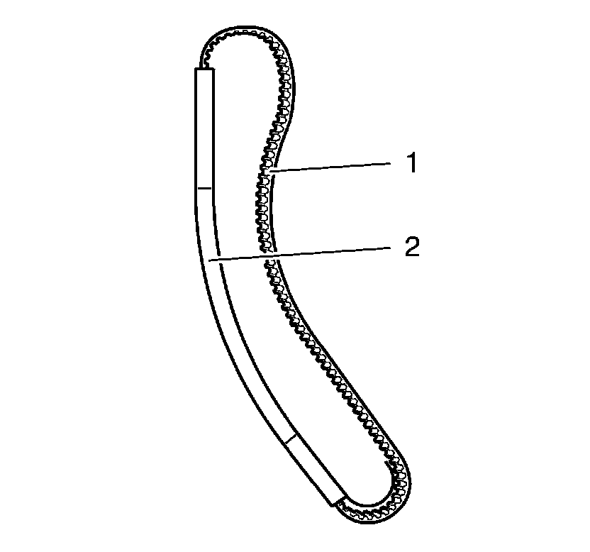 1. Install the timing belt (1) in the enclosed assembly tool (2).