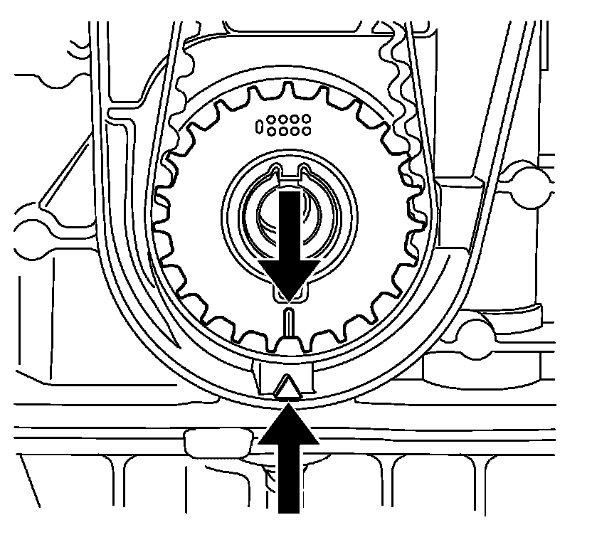3. Remove the timing belt upper front cover. Refer to Timing Belt Upper Front Cover Replacement (1.6L LDE, LXV, 1.8L 2H0, and LUW) (Timing Belt Upper Front Cover Replacement).