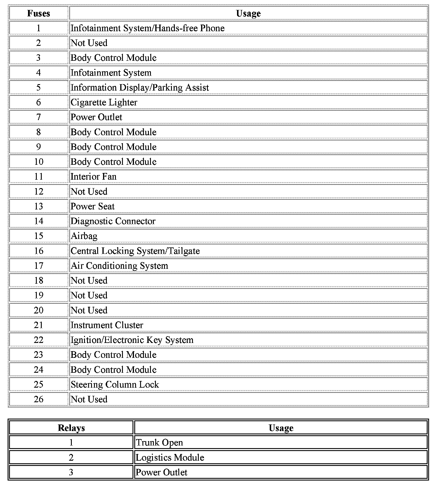 The vehicle may not be equipped with all of the fuses, relays, and features shown.