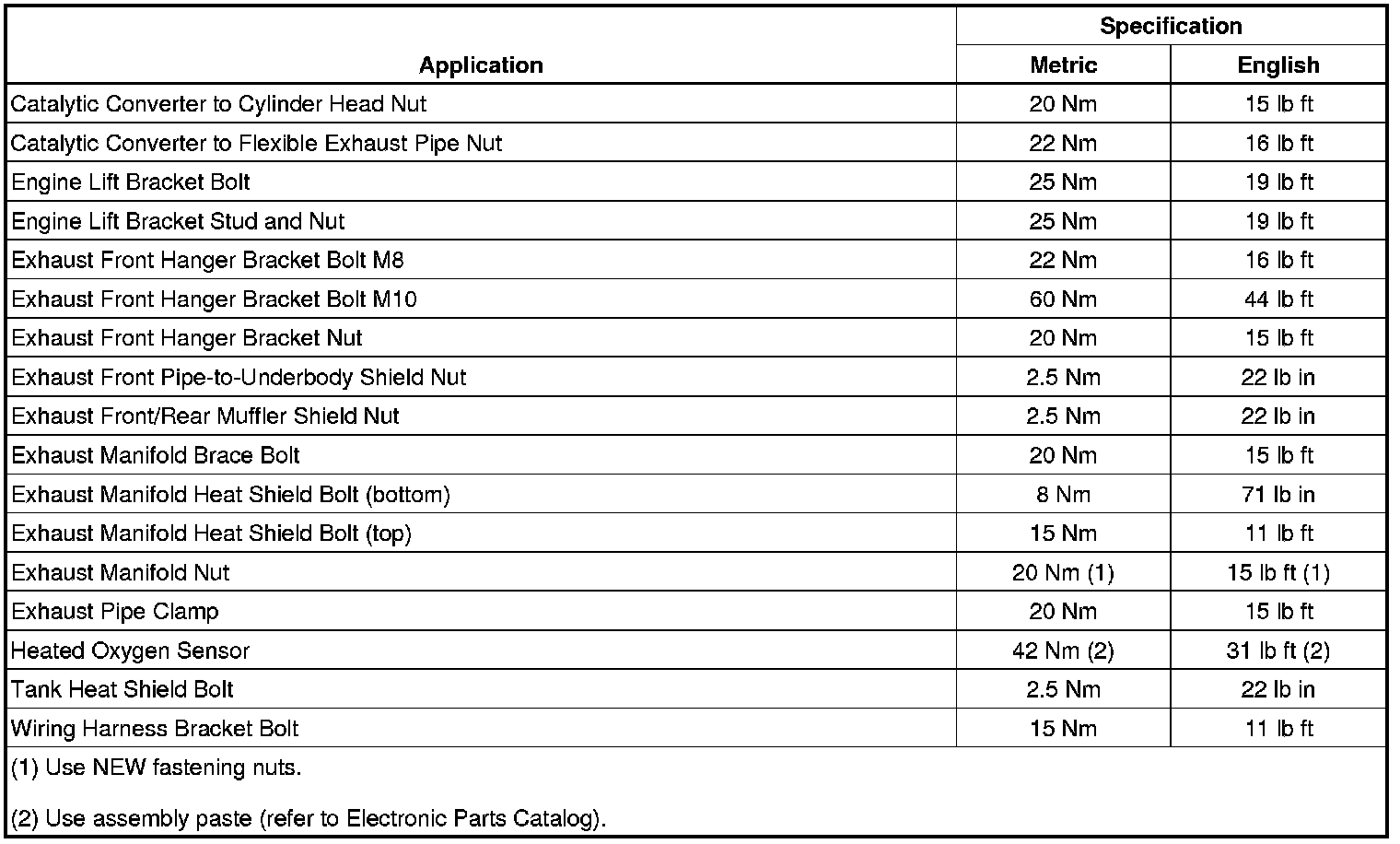 Fastener Tightening Specifications (1.6L LDE, LXT, LXV, 1.8L 2H0, and LUW)