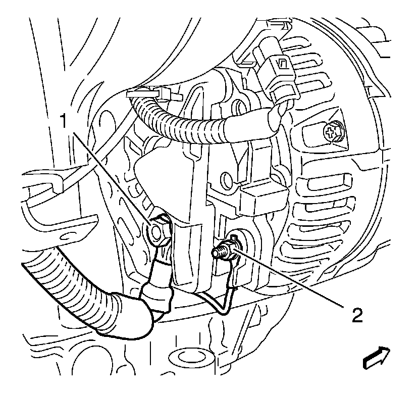 2. Install the 2 generator bolts (2) and tighten to 35 Nm (26 lb ft).