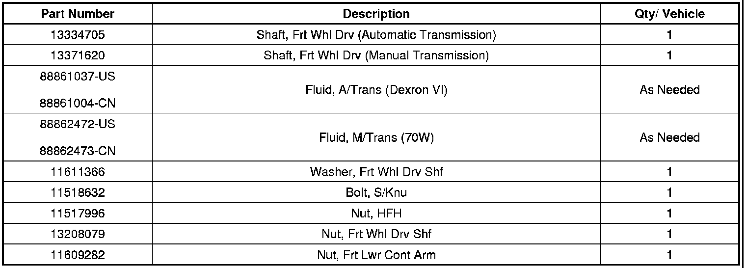 Parts required to complete this program are to be obtained from General Motors Customer Care and Aftersales (GMCC&A). Please refer to your "involved vehicles listing" before ordering parts. Normal orders should be placed on a DRO = Daily Replenishment Order. In an emergency situation, parts should be ordered on a CSO = Customer Special Order.
