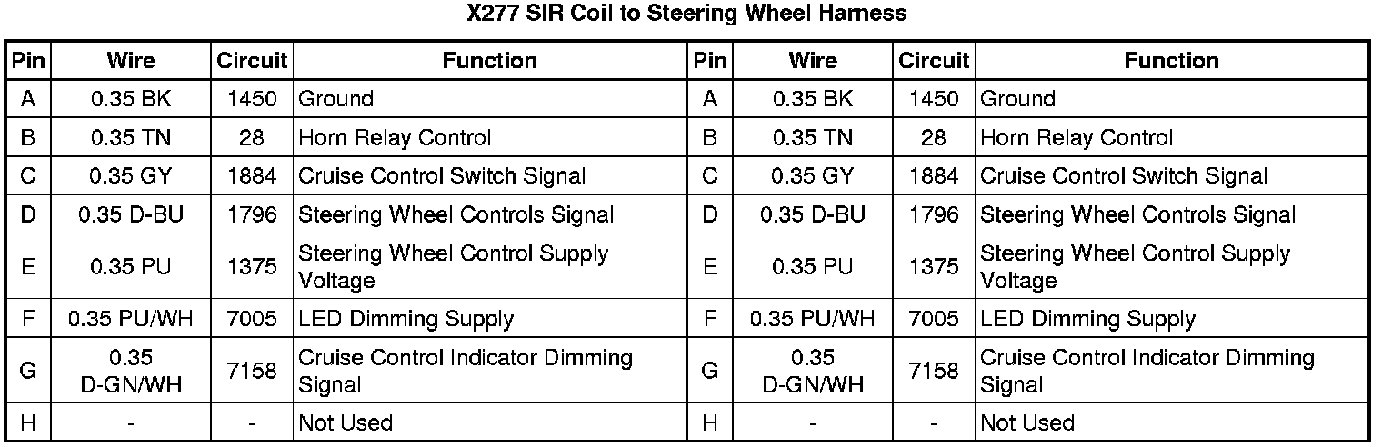X277 SIR Coil to Steering Wheel Harness