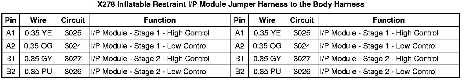 X278 Inflatable Restraint I/P Module Jumper Harness to the Body Harness