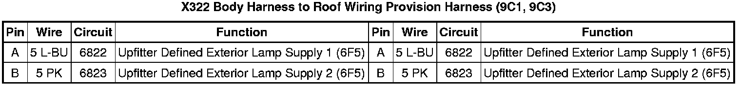 X322 Body Harness to Roof Wiring Provision Harness (9C1, 9C3)