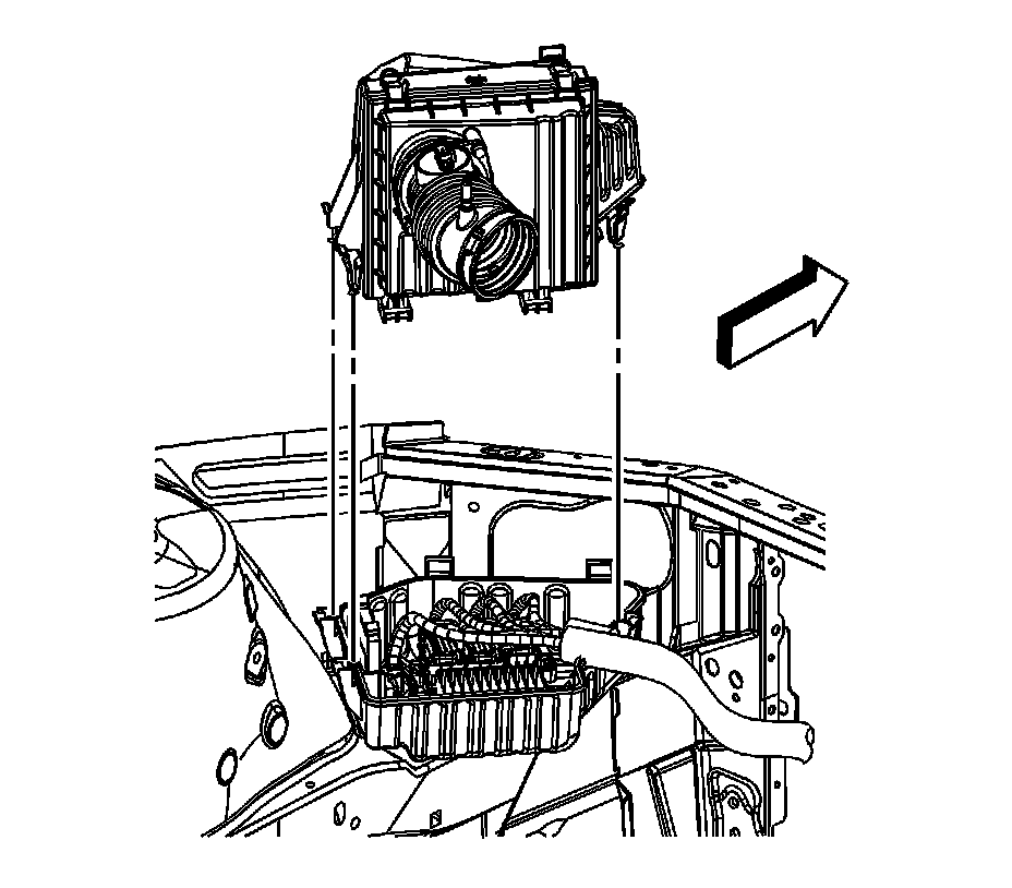1. Install the lower air cleaner housing by pushing the housing down, into the 2 rubber grommets on the inner rail.