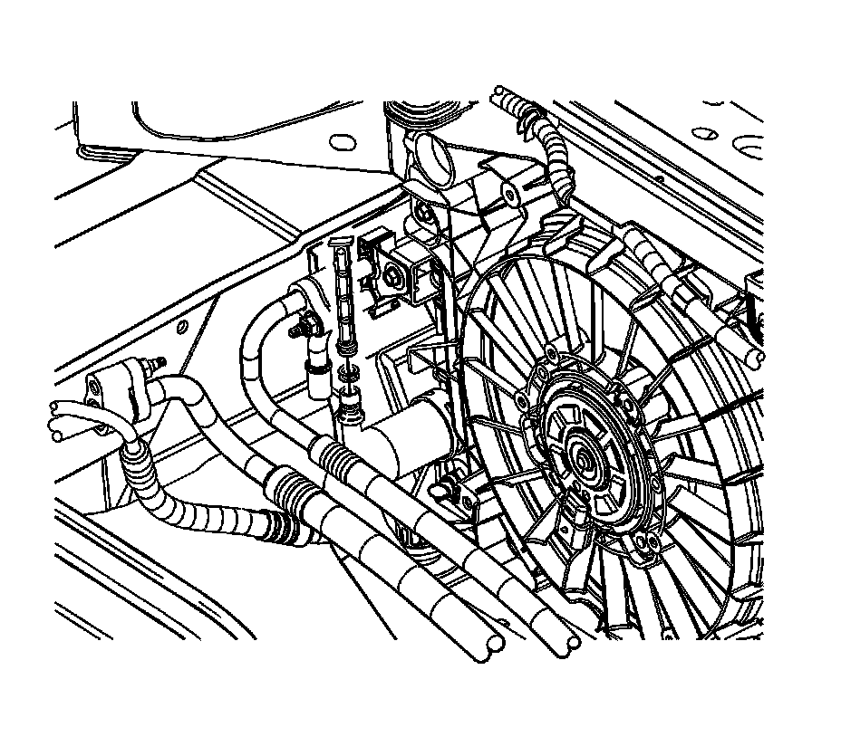 3. Remove the A/C line coupling from the evaporator tube to condenser tube. Refer to Air Conditioning Line/Tube Connector Removal/Replacement (Air Conditioning Line/Tube Connector Removal/Replacement).