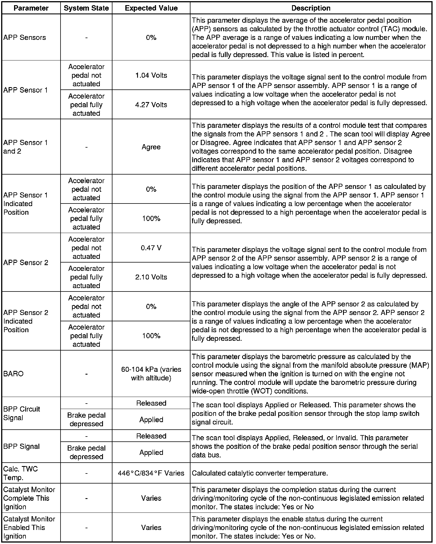 Only the parameters listed below are referenced in this service manual for use in diagnosis. If all values are within the typical range described below, refer to Symptoms - Engine Controls (Symptoms - Engine Controls) for diagnosis.