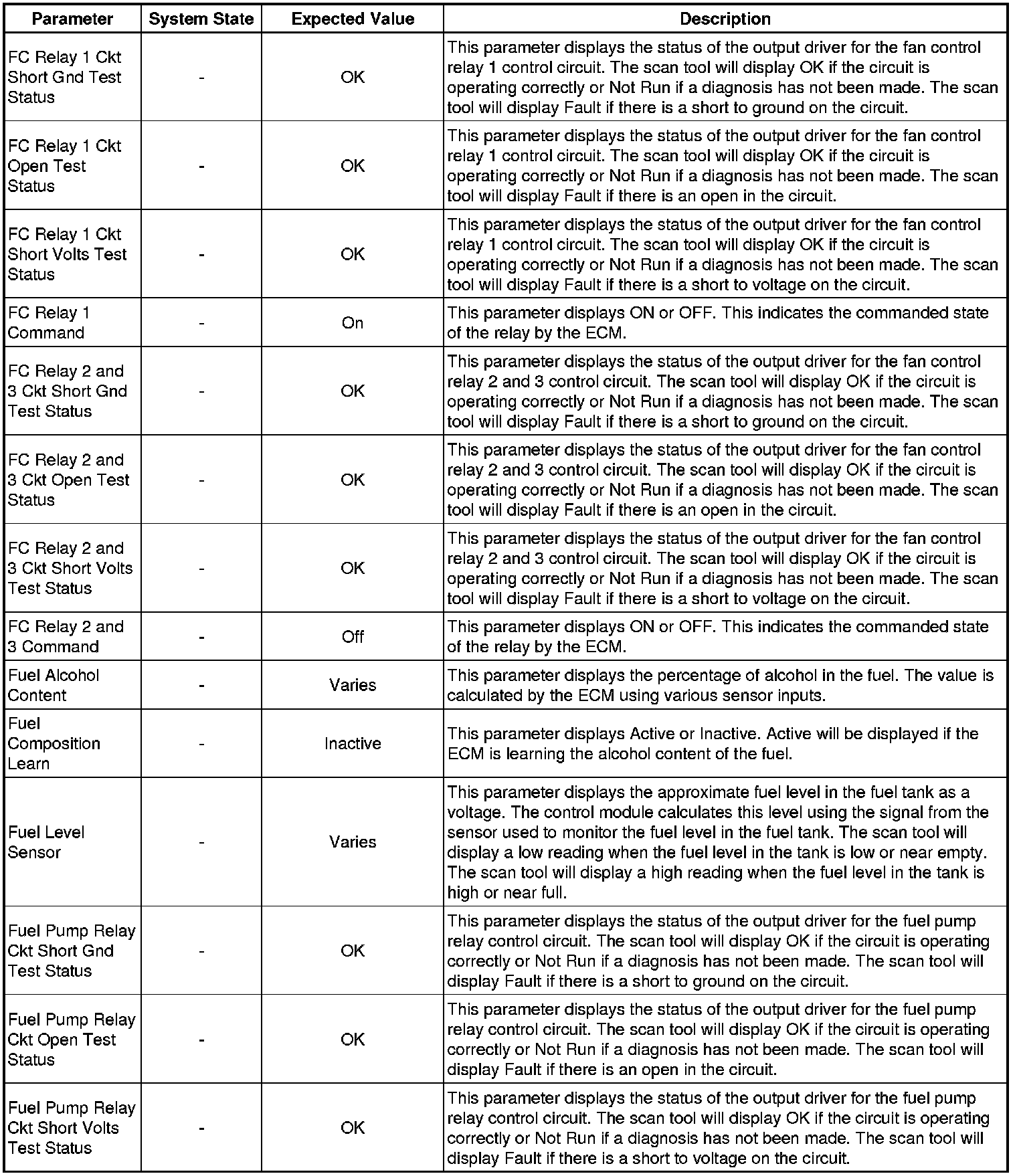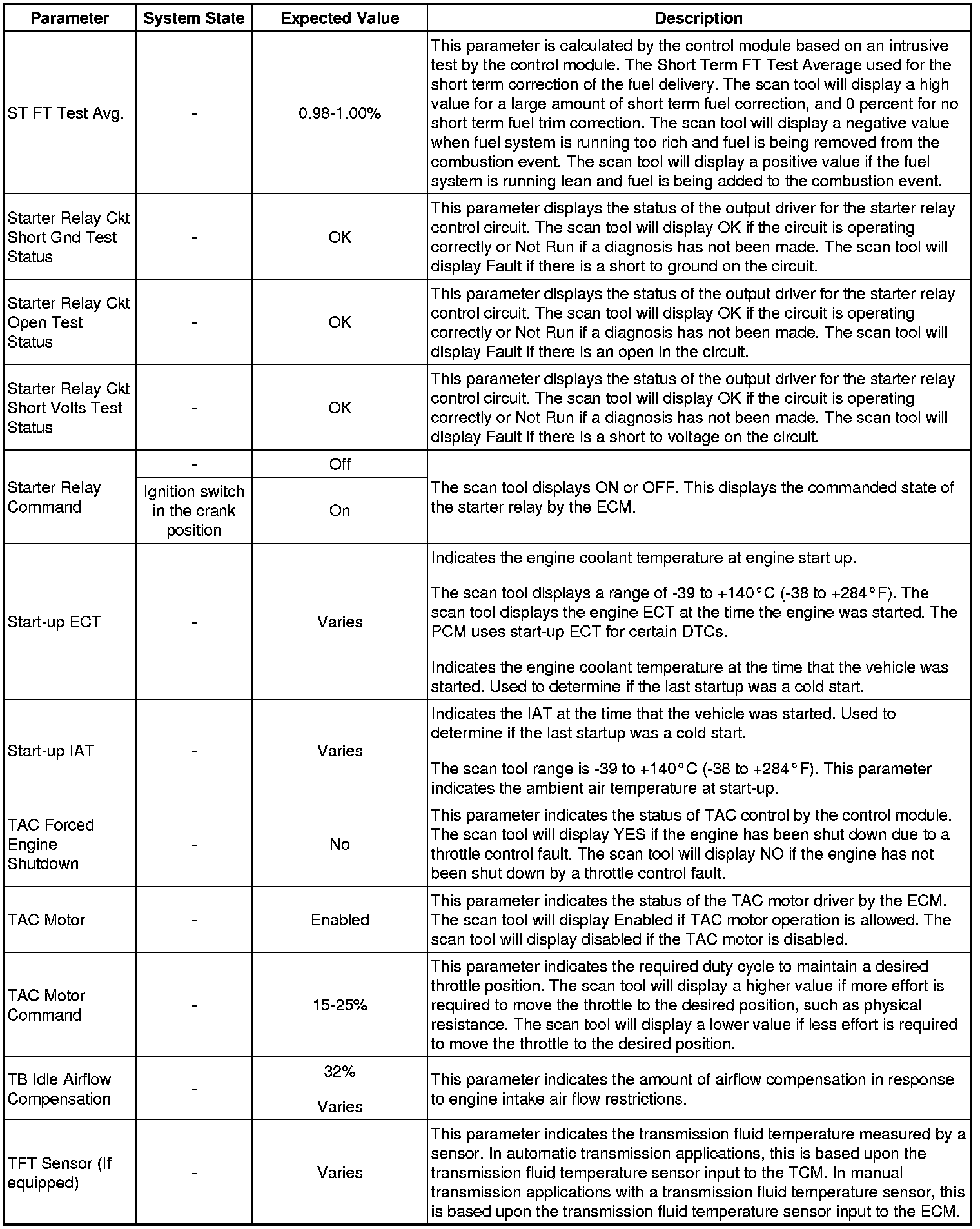 The Engine Control Module Scan Tool Data List contains all engine-related parameters that are available on the scan tool. The list is arranged in alphabetical order. A given parameter may appear in any one of the data lists, and in some cases may appear more than once, or in more than one data list in order to group certain related parameters together.