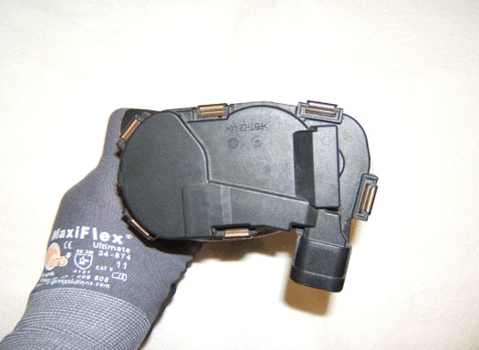 7. Hold the throttle body with your hand, so that the throttle position (TP) sensor cover is facing upward as shown.