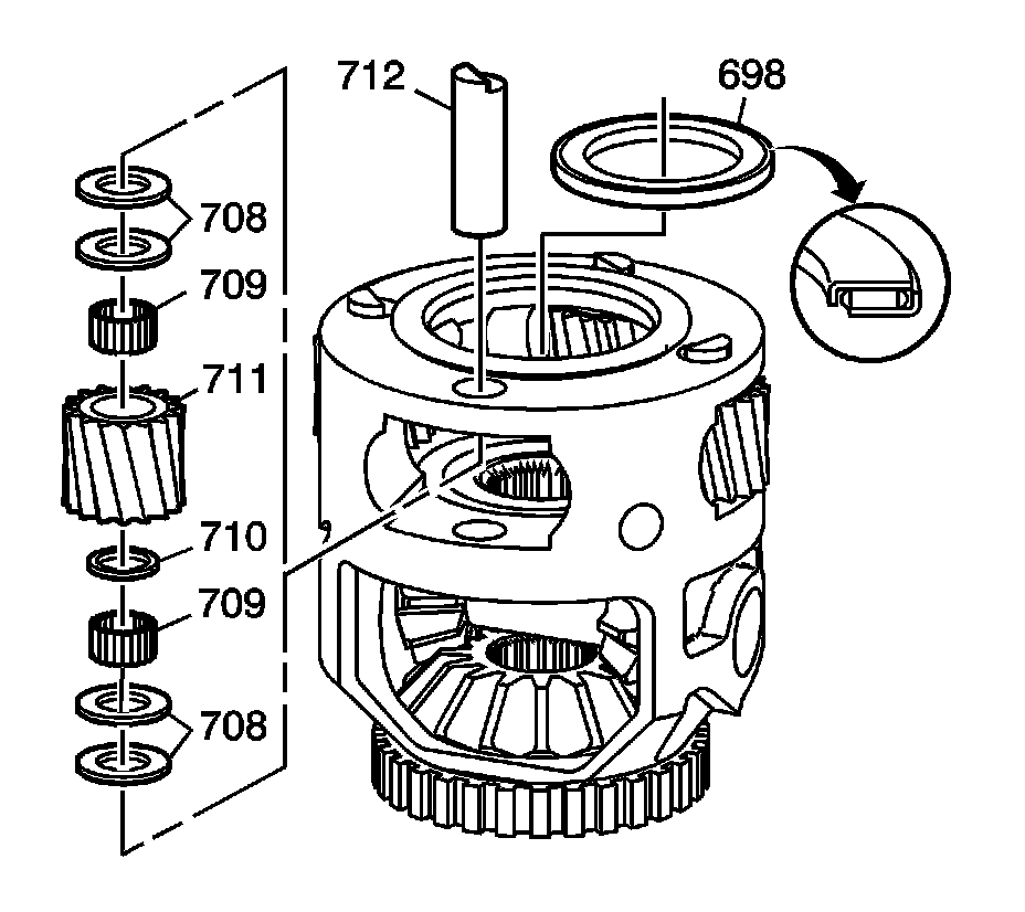 11. Remove the differential side gear thrust washers (706).