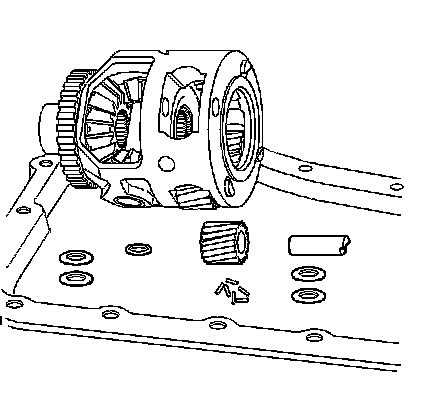 Note: Keep all washers and bearings together with the planetary pinion gear and pin. The pinion gears, washers, and bearings must be reinstalled in the original locations and orientation. If the gear is installed upside down, noise may result, because of the gear wear pattern.