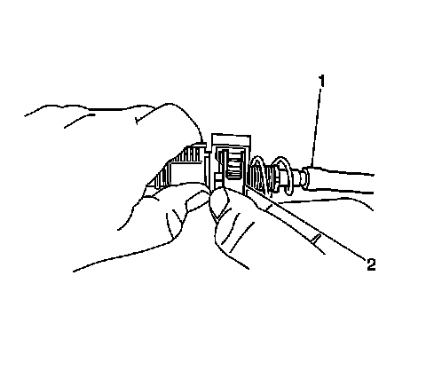 Important: This step must be performed correctly to avoid a misadjusted cable. Do not grasp the shift cable end (2) during this procedure.