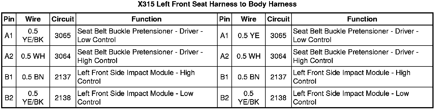 X315 Left Front Seat Harness to Body Harness