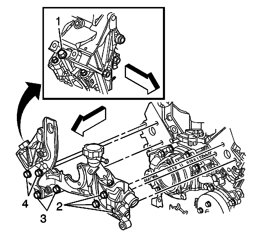 2. Install the coolant crossover pipe bolts (2, 3, 4).