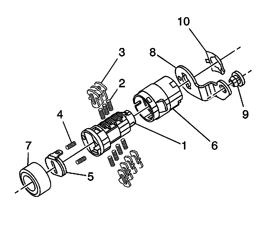 Note: The tumblers (3) are not self-retaining and must be held in place if the key is not fully inserted into the lock cylinder or until the cylinder (1) is assembled into the case assembly (6).