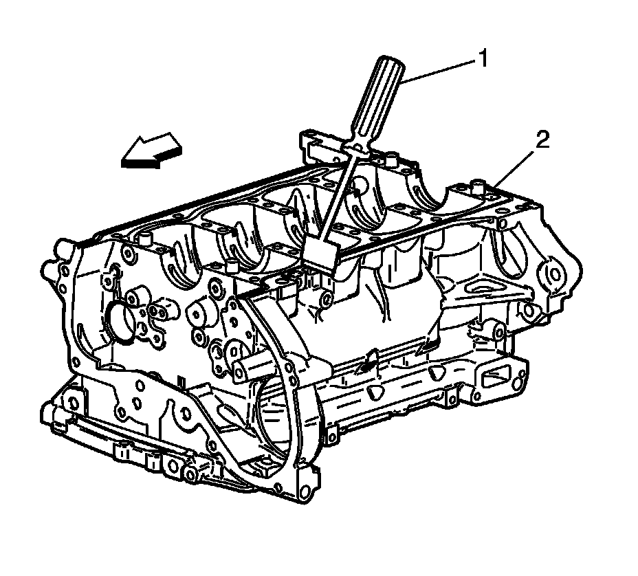 15. Inspect the crankshaft main bearing bores. Use the EN-8087 - gauge (1) to measure the bearing bore concentricity and alignment. Refer to Engine Mechanical Specifications (LE5, LE9) (Service Limits & General Specifications).