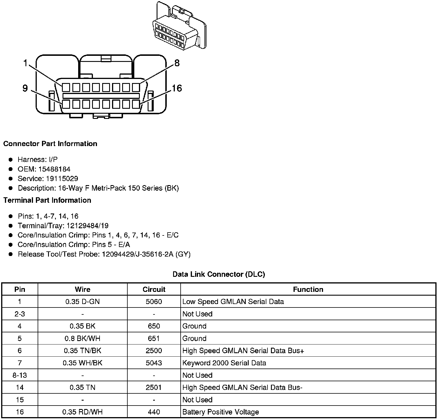 Data Link Connector: Diagrams
