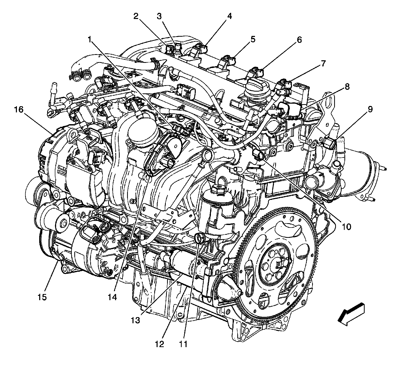 Front and Left Side of the Engine Components (LE5 or LE9)