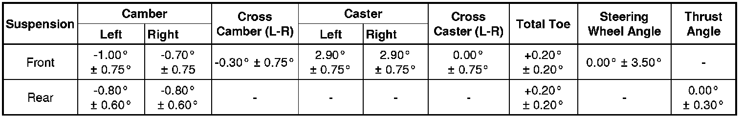 Wheel Alignment Specifications