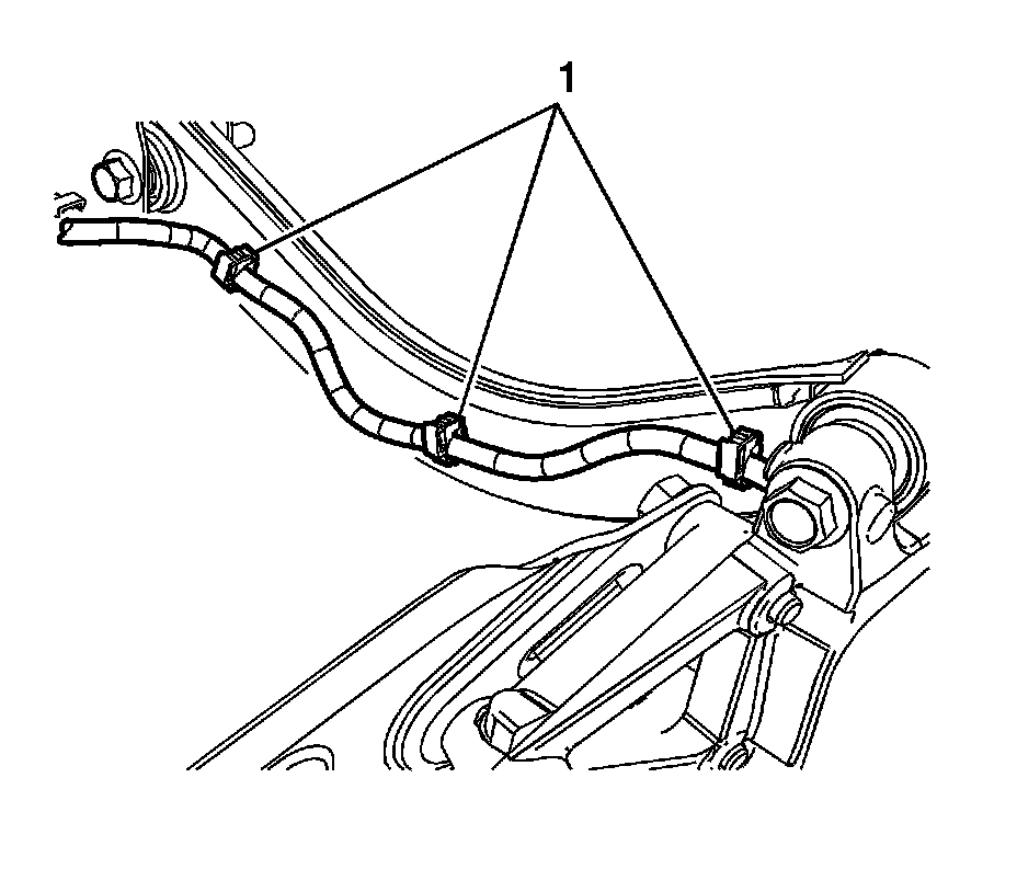6. Remove the wheel speed sensor wiring harness from the trailing arm bracket at the right rear of the vehicle.