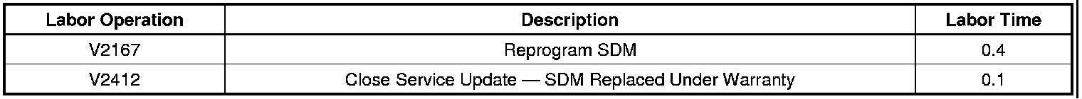 - If there are no DTCs set or DTC B1000 is set, REPLACE the SDM. Refer to SI for SDM replacement and setup instructions. Submit a claim using labor code V2412 to close this Service Update, and then submit a claim under warranty for the repair work and diagnostic time. Refer to the published labor time for this repair.
