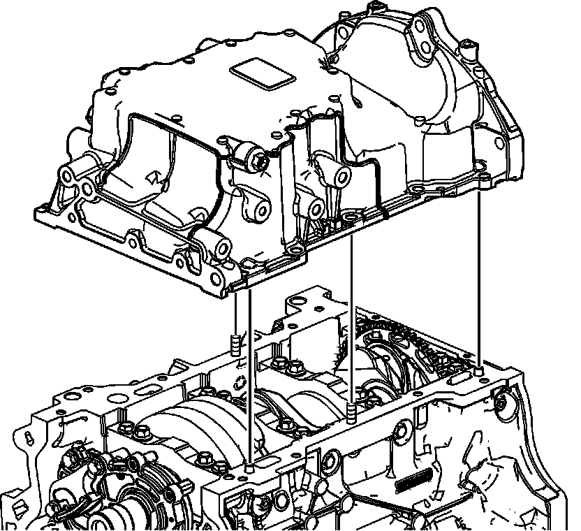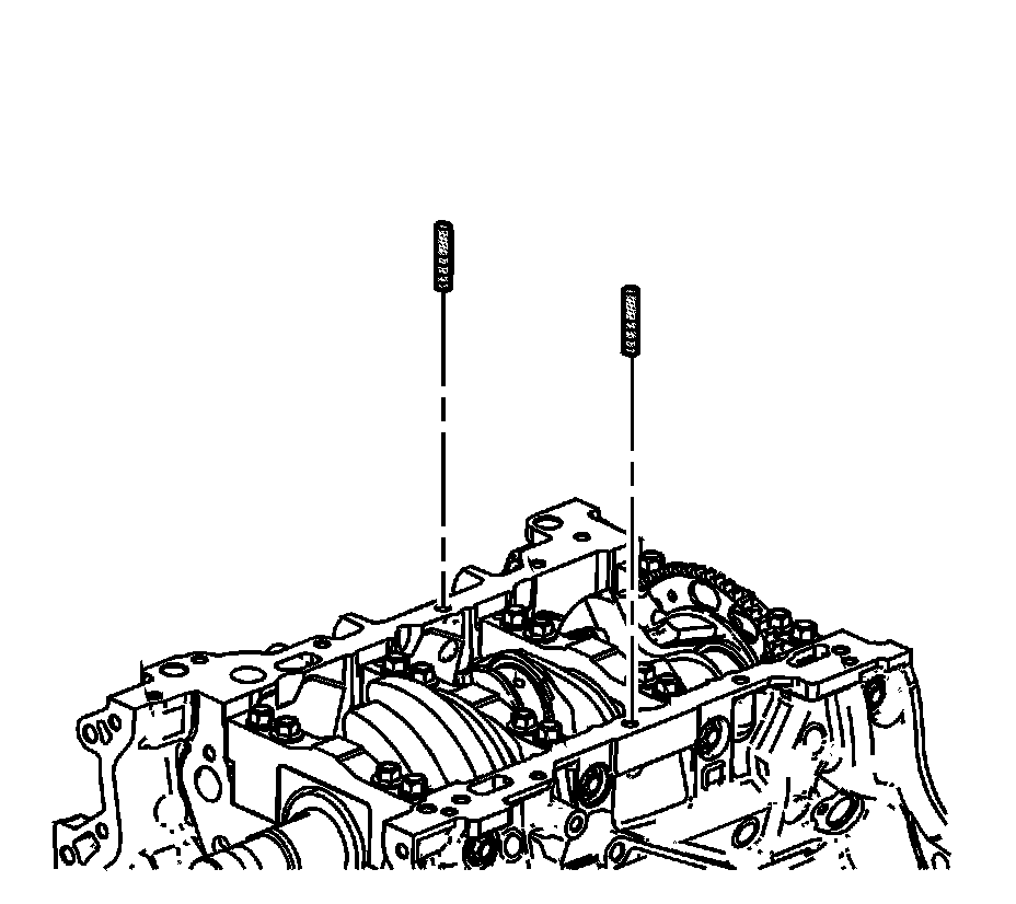 1. Install the 8 mm (0.315 in) guides from the EN-46109 - set into the center oil pan rail bolt hole on each side of the engine block.