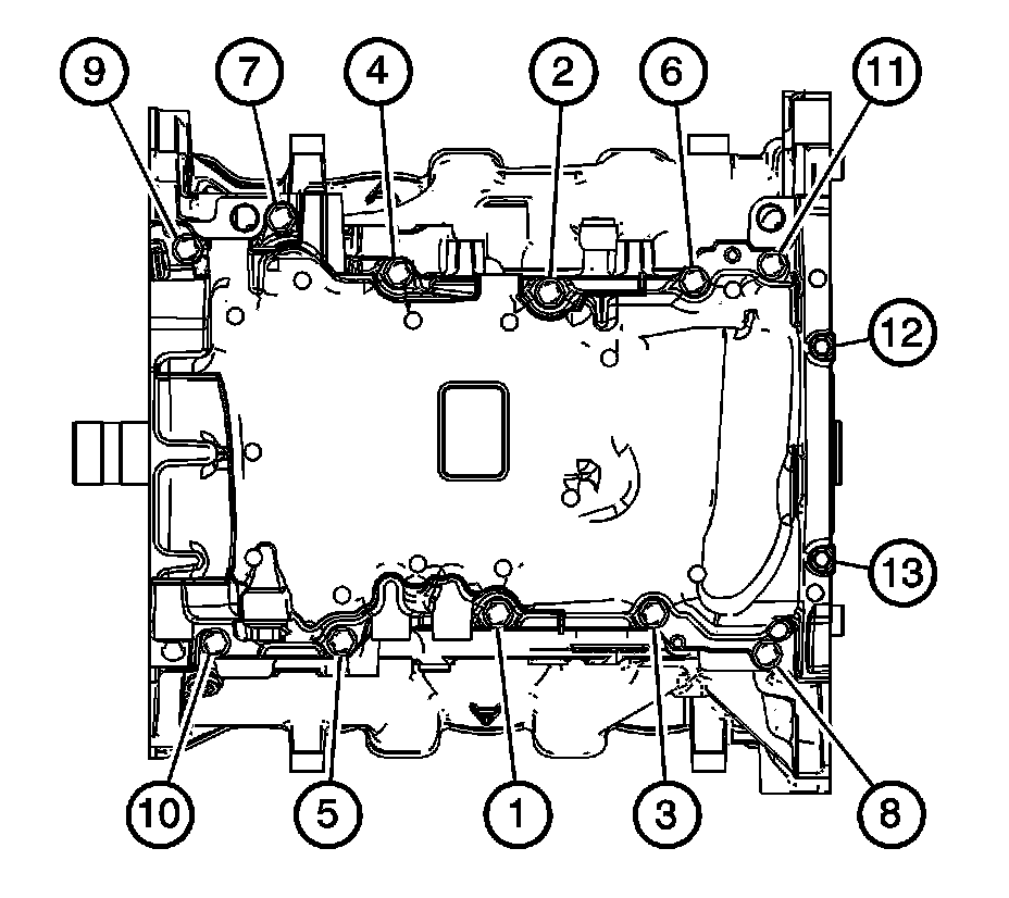 6. Tighten the oil pan bolts in sequence.