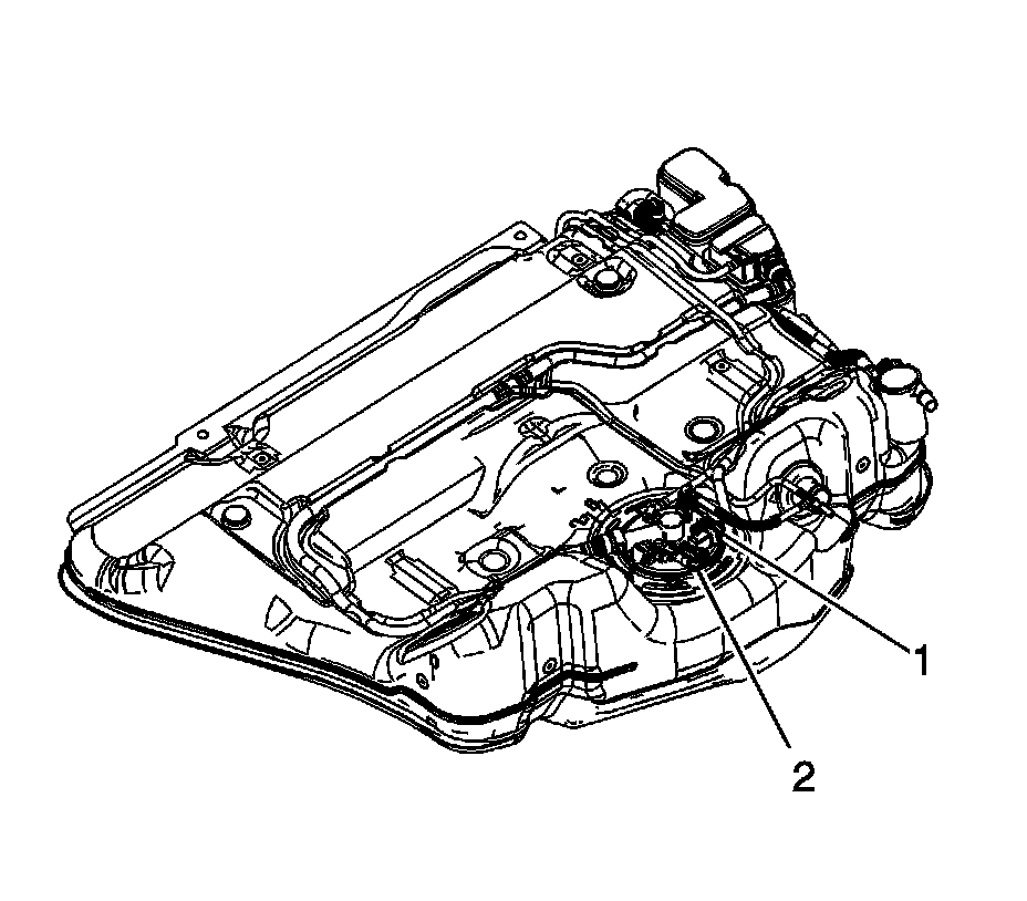2. Disconnect the fuel tank fuel pump module wiring harness electrical connectors (1, 2) from the fuel pressure sensor and the module.