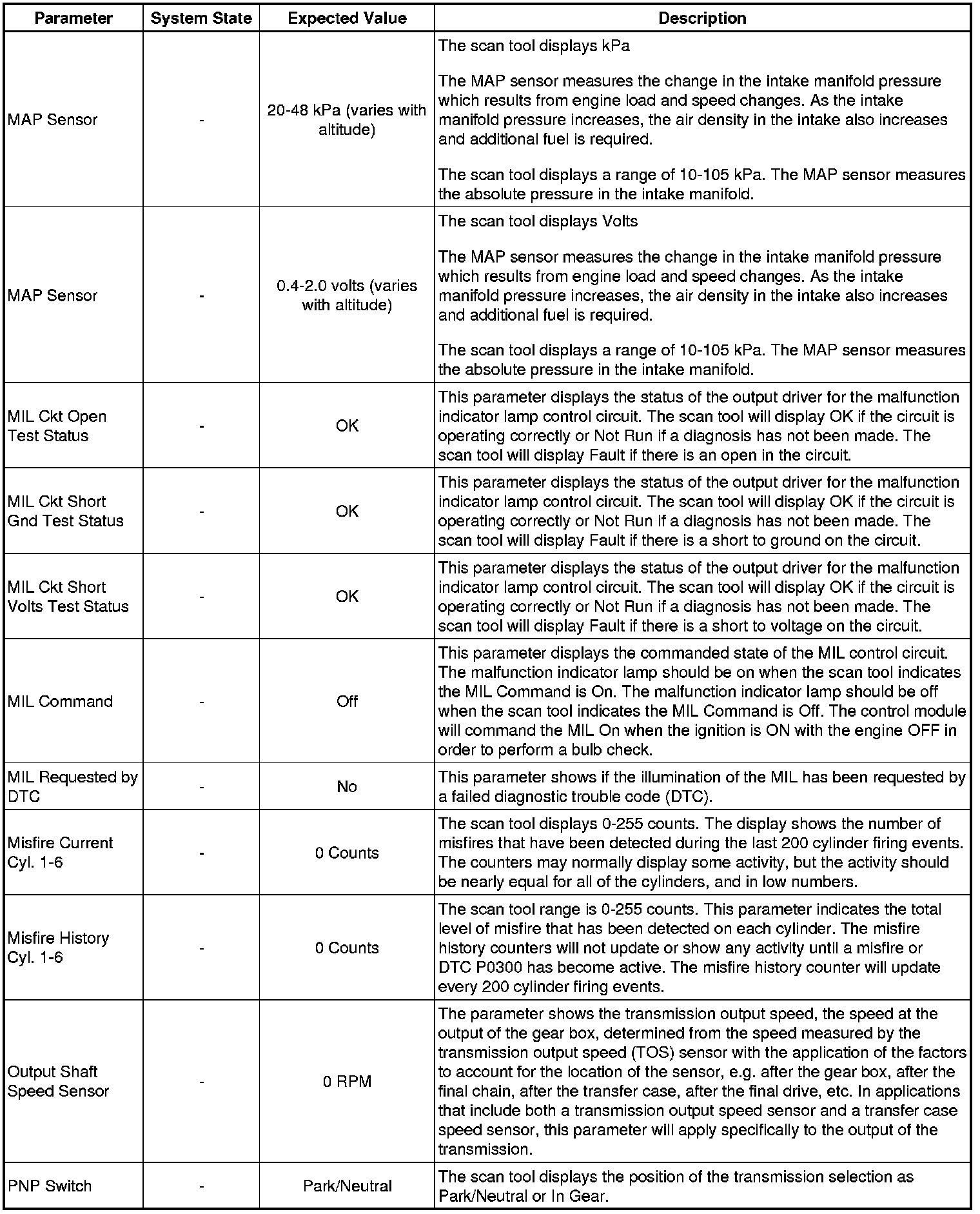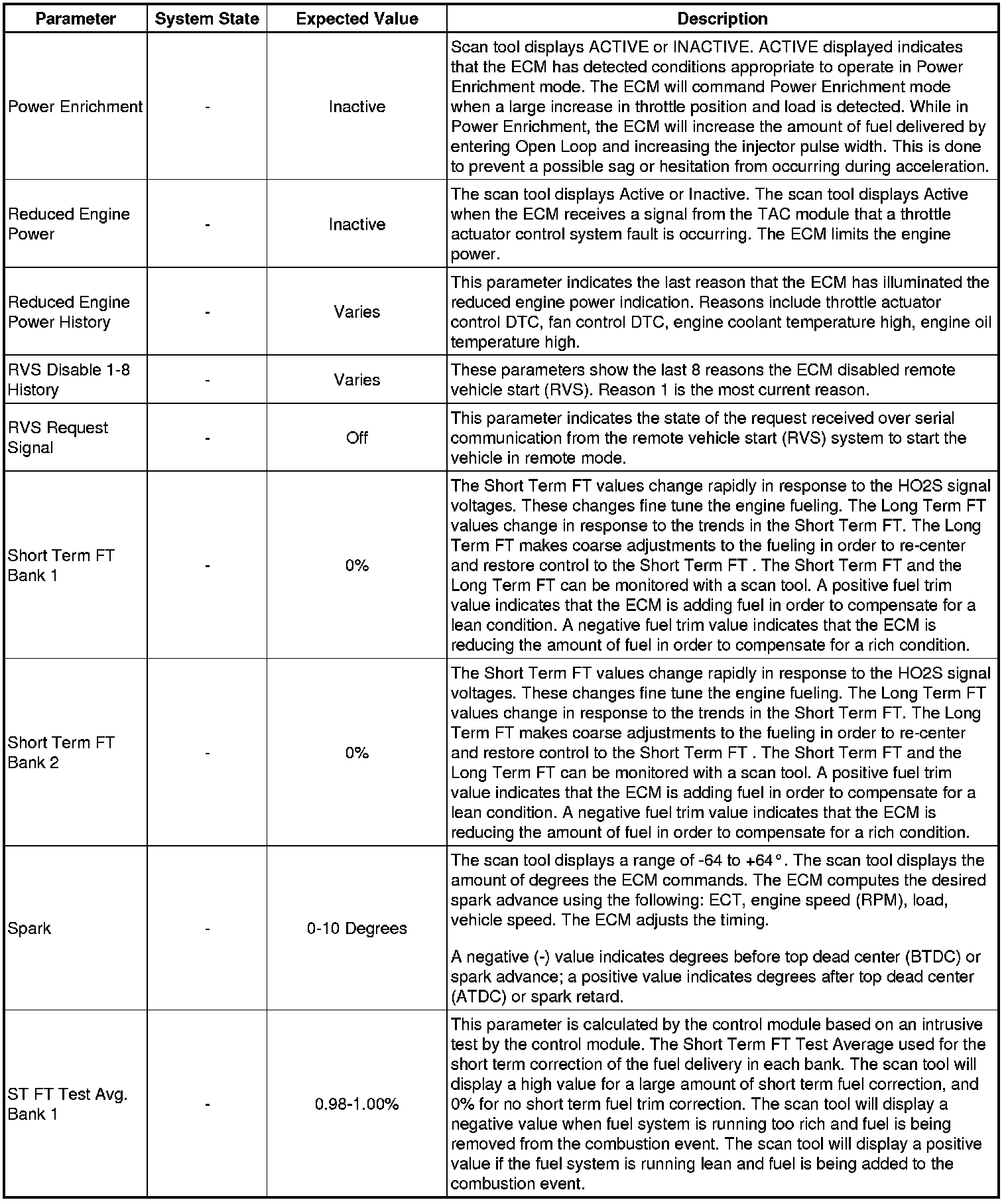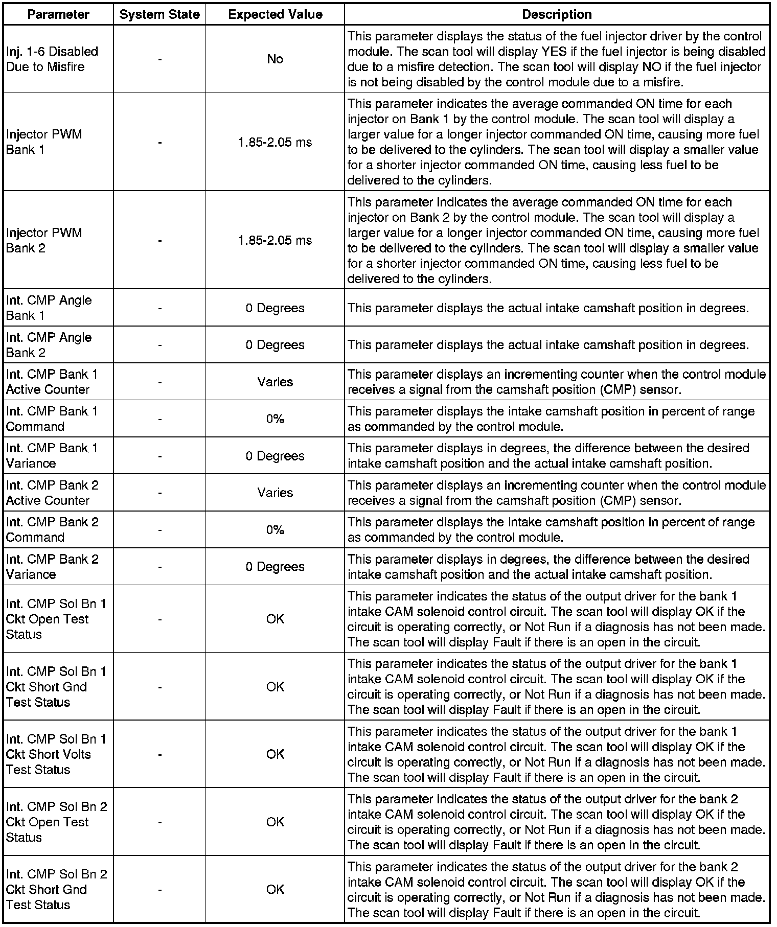 Only the parameters listed below are referenced in this service manual for use in diagnosis. If all values are within the typical range described below, refer to Symptoms - Engine Controls (Symptoms - Engine Controls) for diagnosis.