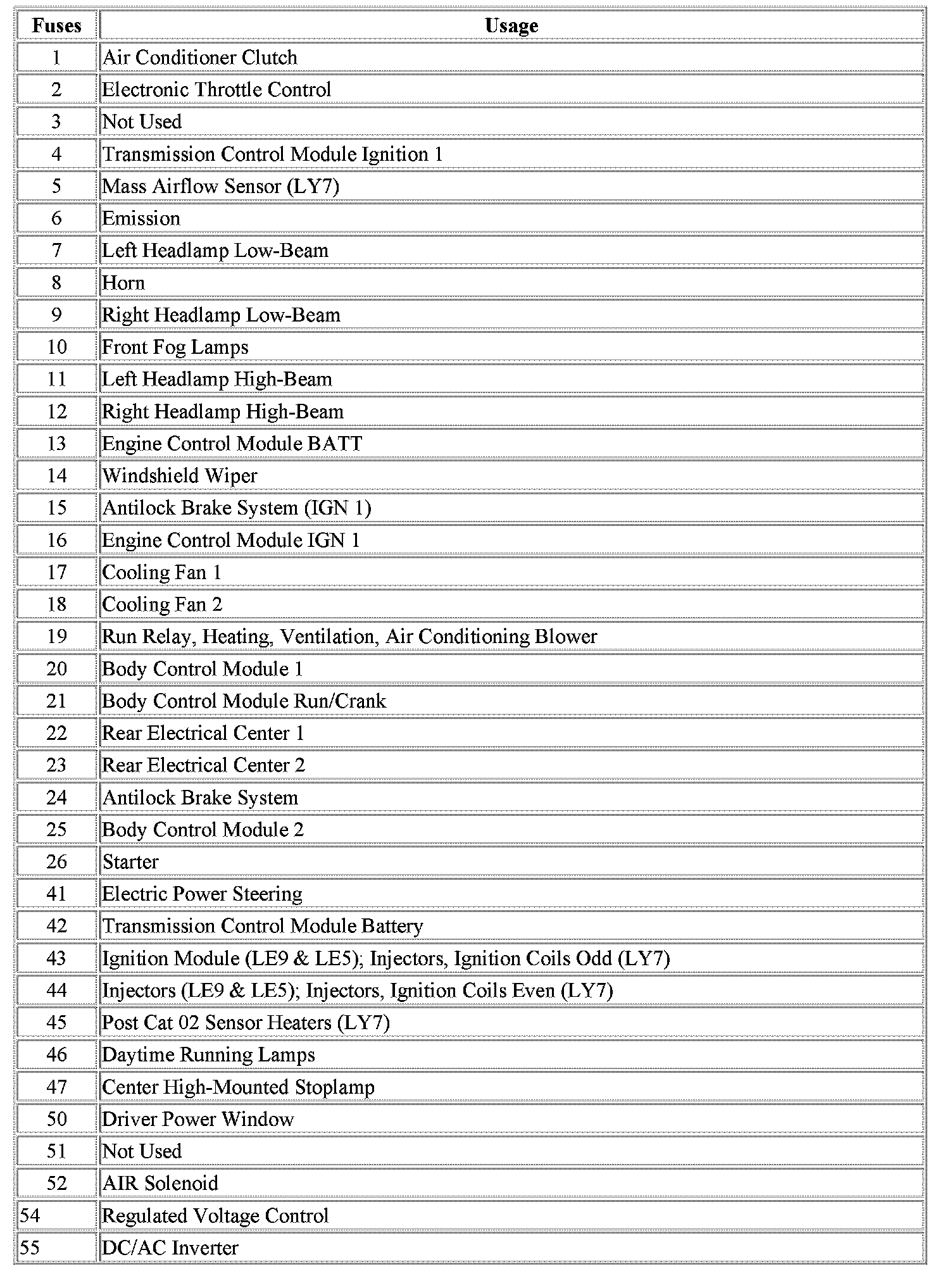 The vehicle may not be equipped with all the fuses, relays, and features shown.