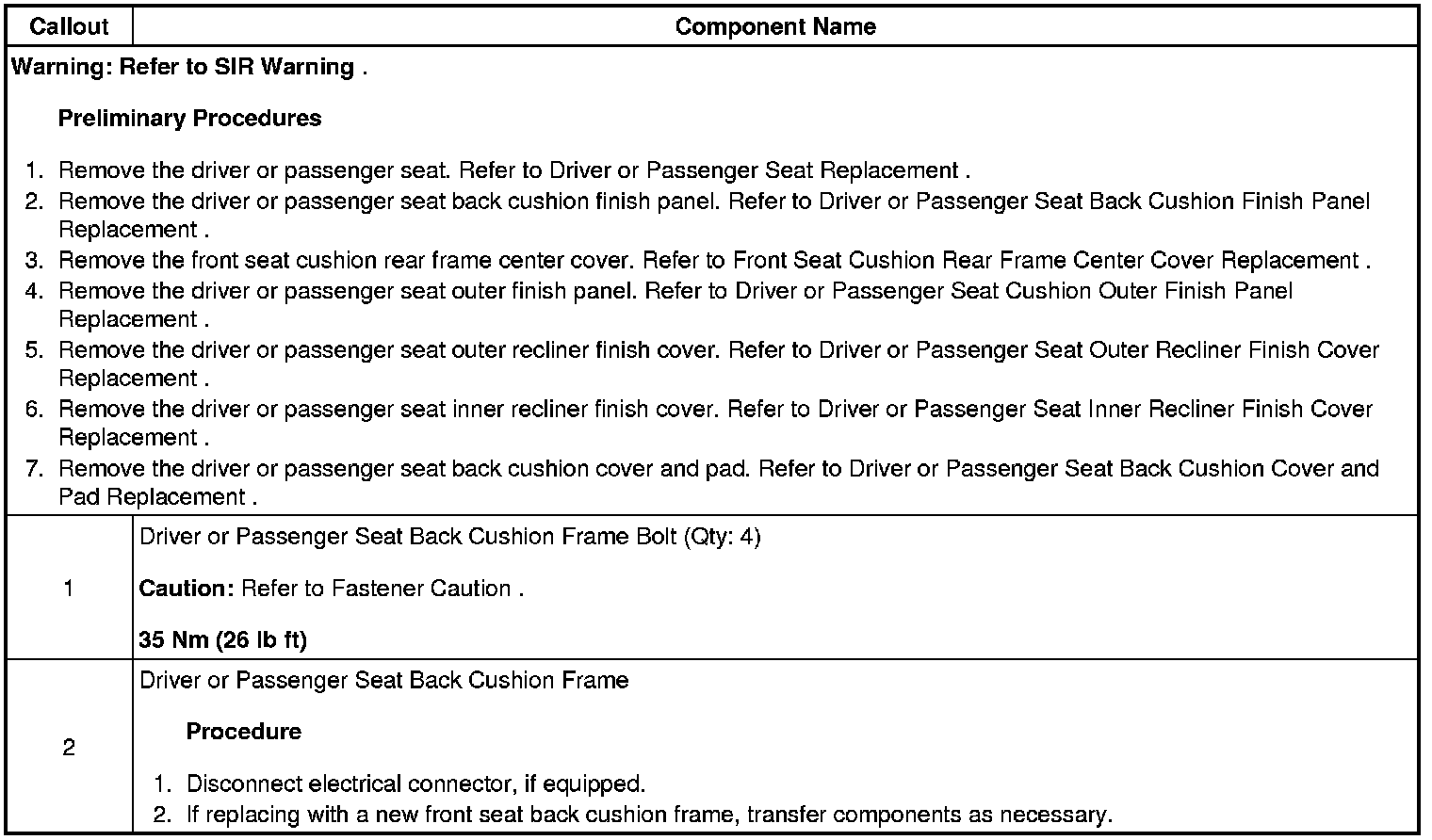 Driver or Passenger Seat Back Cushion Frame Replacement
