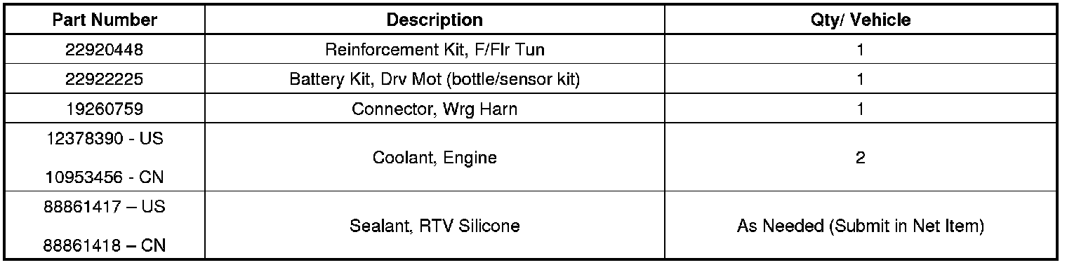 Parts listed in the table below are to be obtained from General Motors Customer Care and Aftersales (GMCC&A). Please refer to your "involved vehicles listing" before ordering parts. Normal orders should be placed on a DRO = Daily Replenishment Order. In an emergency situation, parts should be ordered on a CSO = Customer Special Order.
