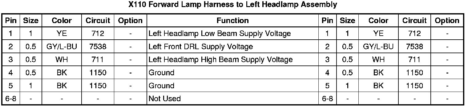 X110 Forward Lamp Harness to Left Headlamp Assembly