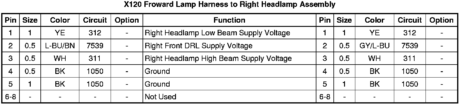 X120 Froward Lamp Harness to Right Headlamp Assembly