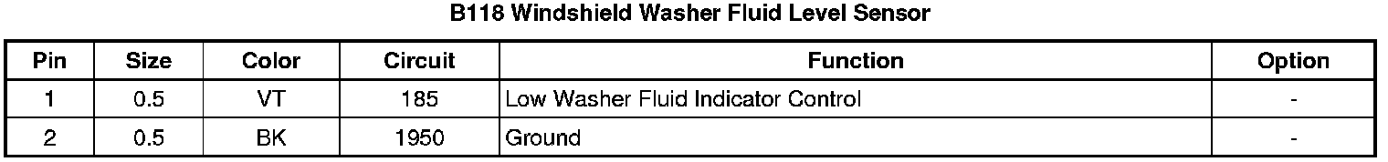 B118 Windshield Washer Fluid Level Sensor