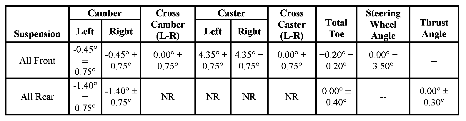 Wheel Alignment Specifications