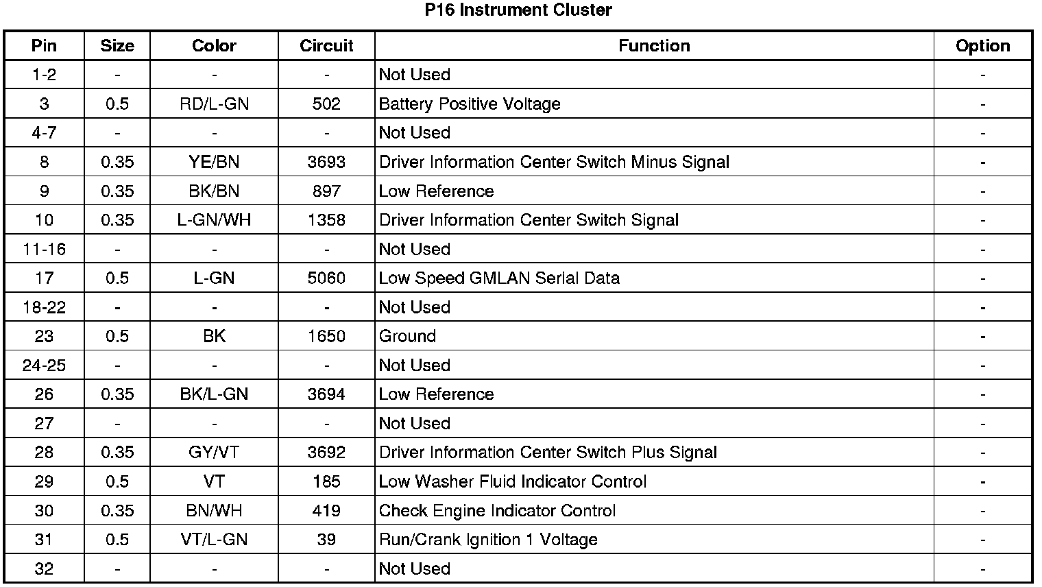 Instrument Cluster P16