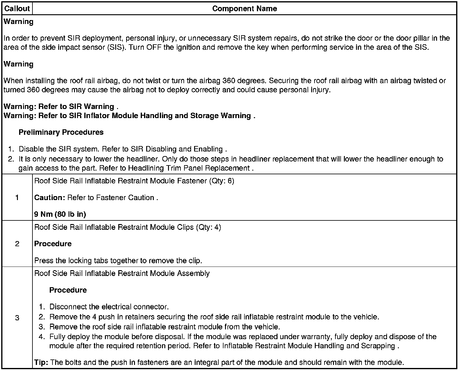 Roof Side Rail Inflatable Restraint Module Replacement