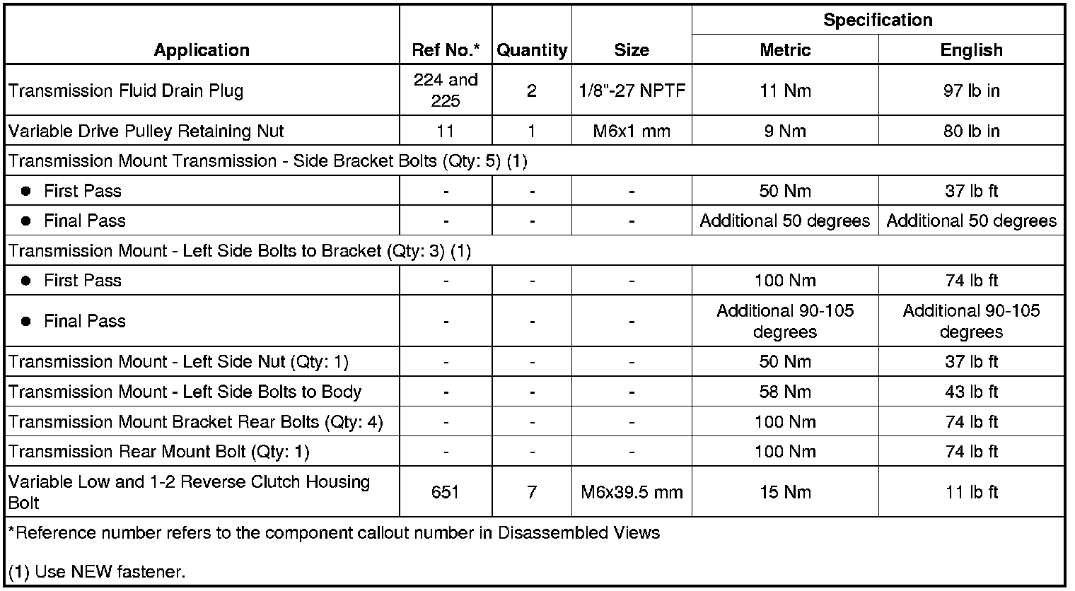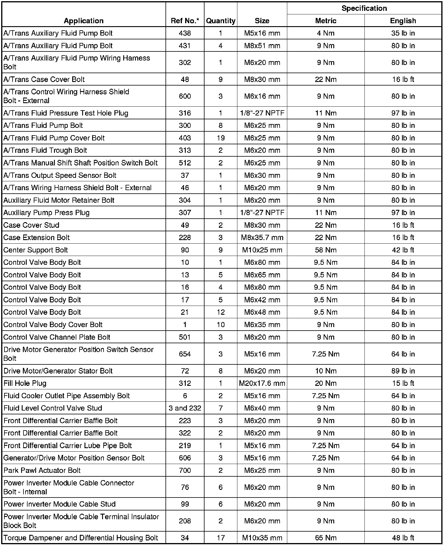 Fastener Tightening Specifications
