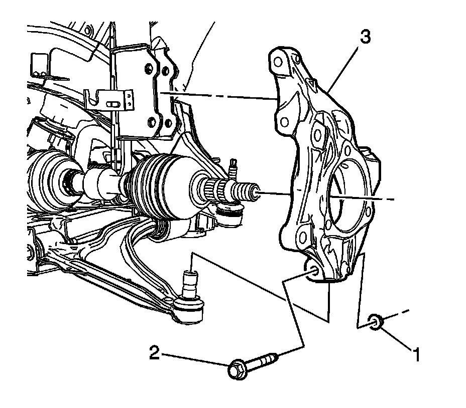 8. Remove the steering knuckle (3) from the vehicle.