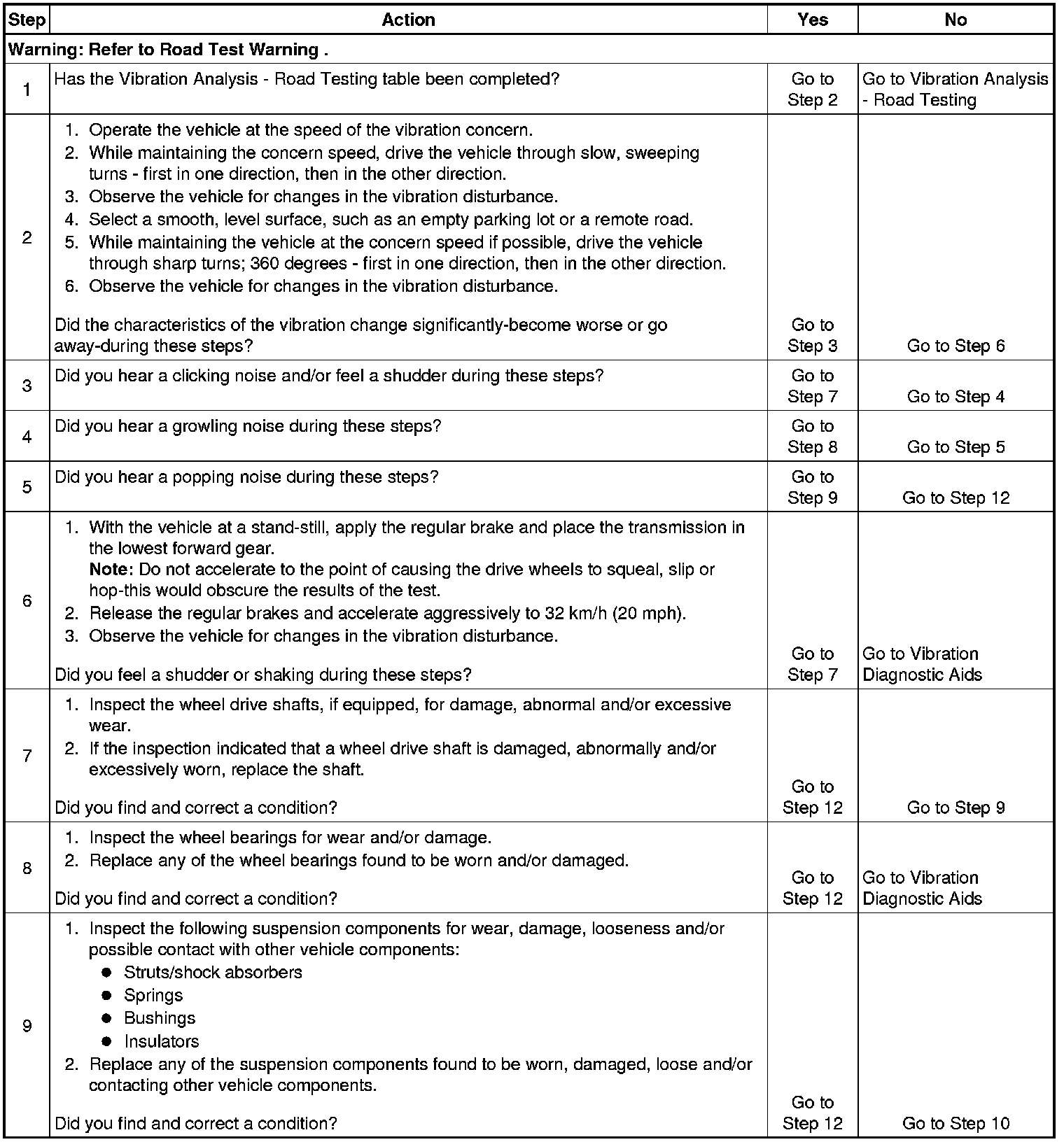 7. Damaged or worn wheel drive shafts may cause a noise or vibration that may be transferred into the passenger compartment.