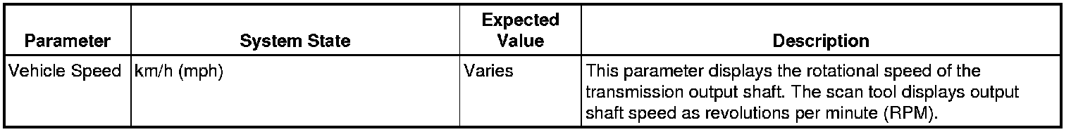 The scan tool values from a properly functioning transmission may be used for comparison with the transmission you are diagnosing. The values below represent a typical display recorded from a properly functioning system.