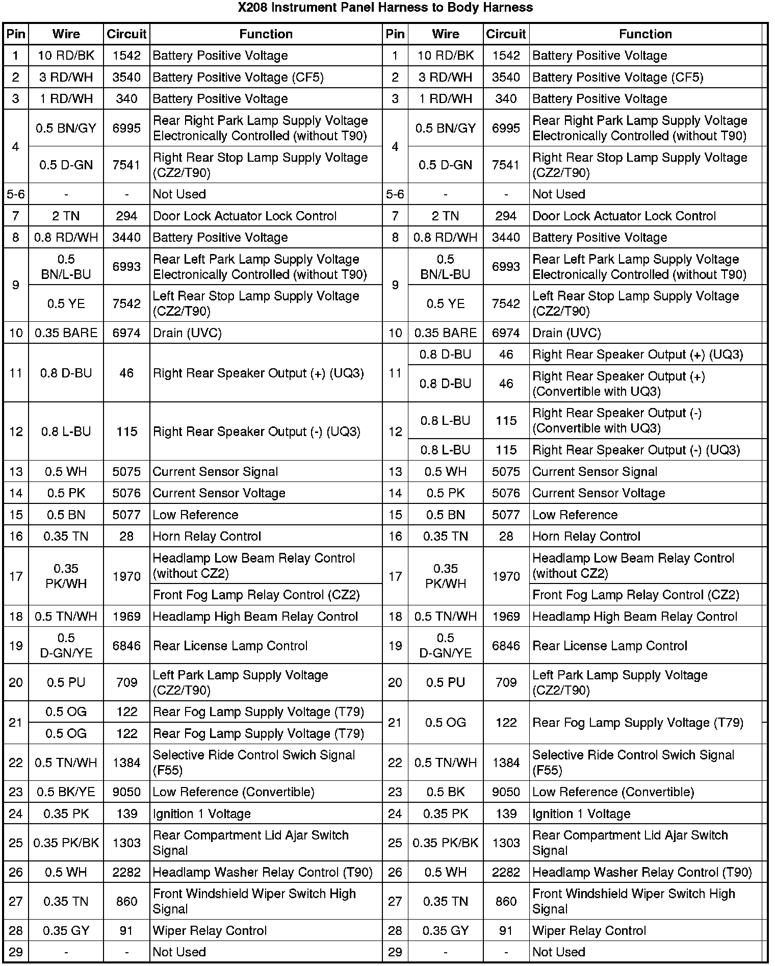 X208 Instrument Panel Harness to Body Harness