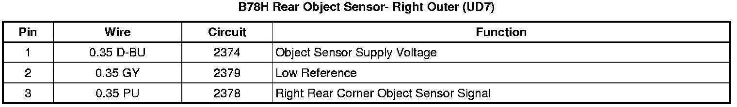 B78H Rear Object Sensor- Right Outer (UD7)