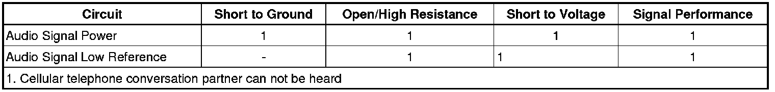 4. Test for infinite resistance between the audio signal circuit terminal 6 X1 at the K82 Mobile Telephone Control Module and ground.