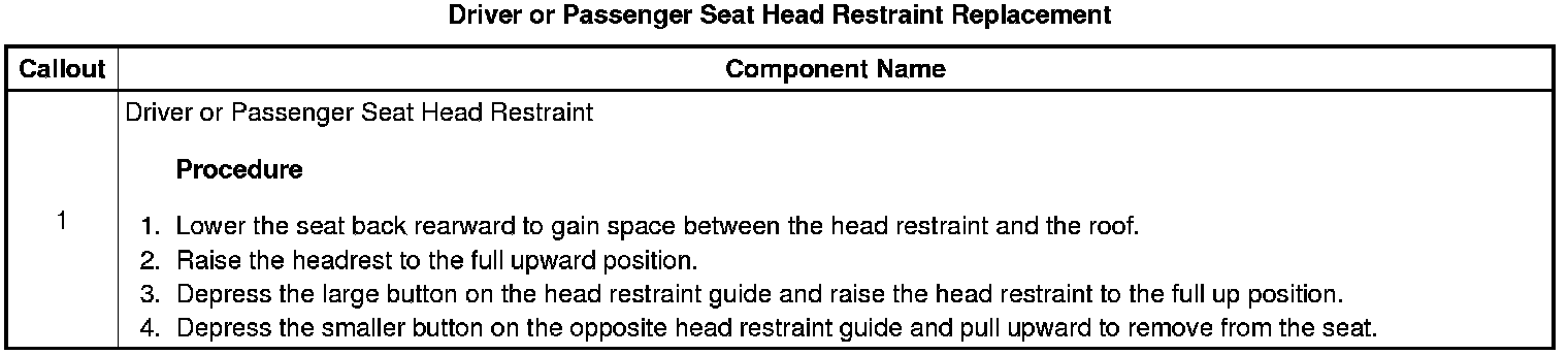 Driver or Passenger Seat Head Restraint Replacement