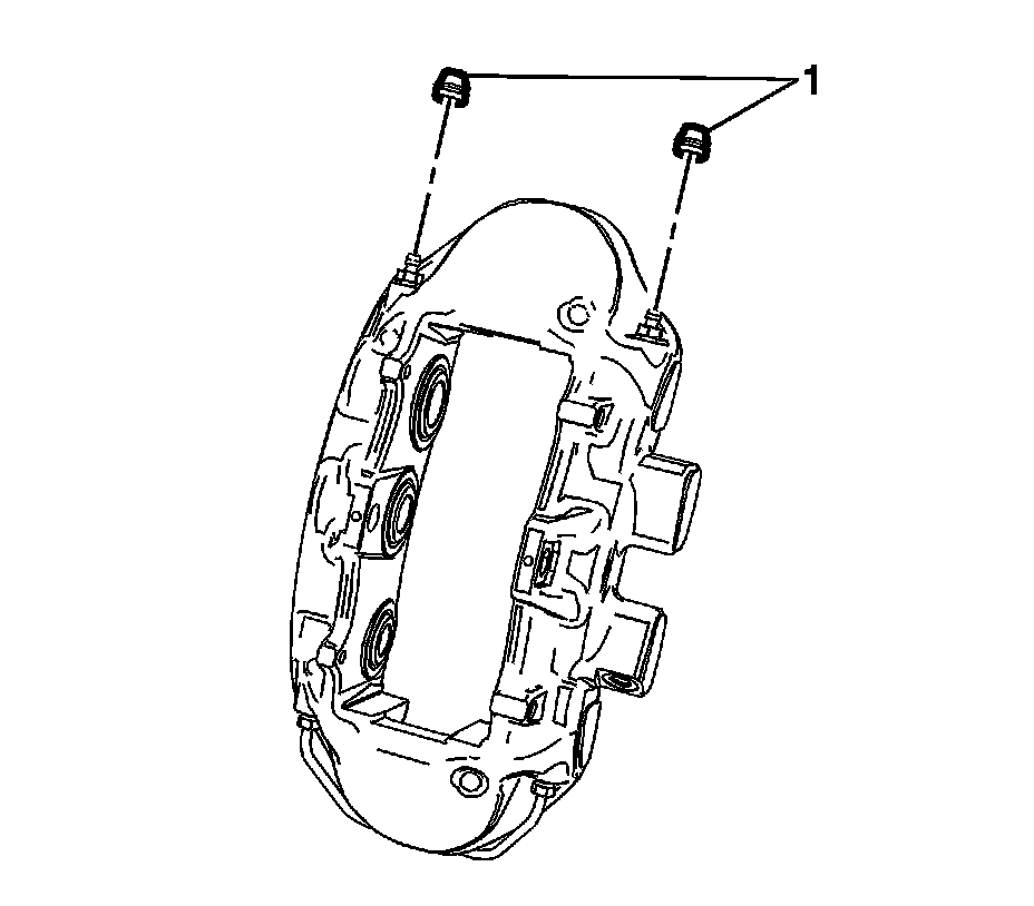 14. Using a non-marring, flat-bladed tool, remove and discard the brake caliper dust boot seals (1).
